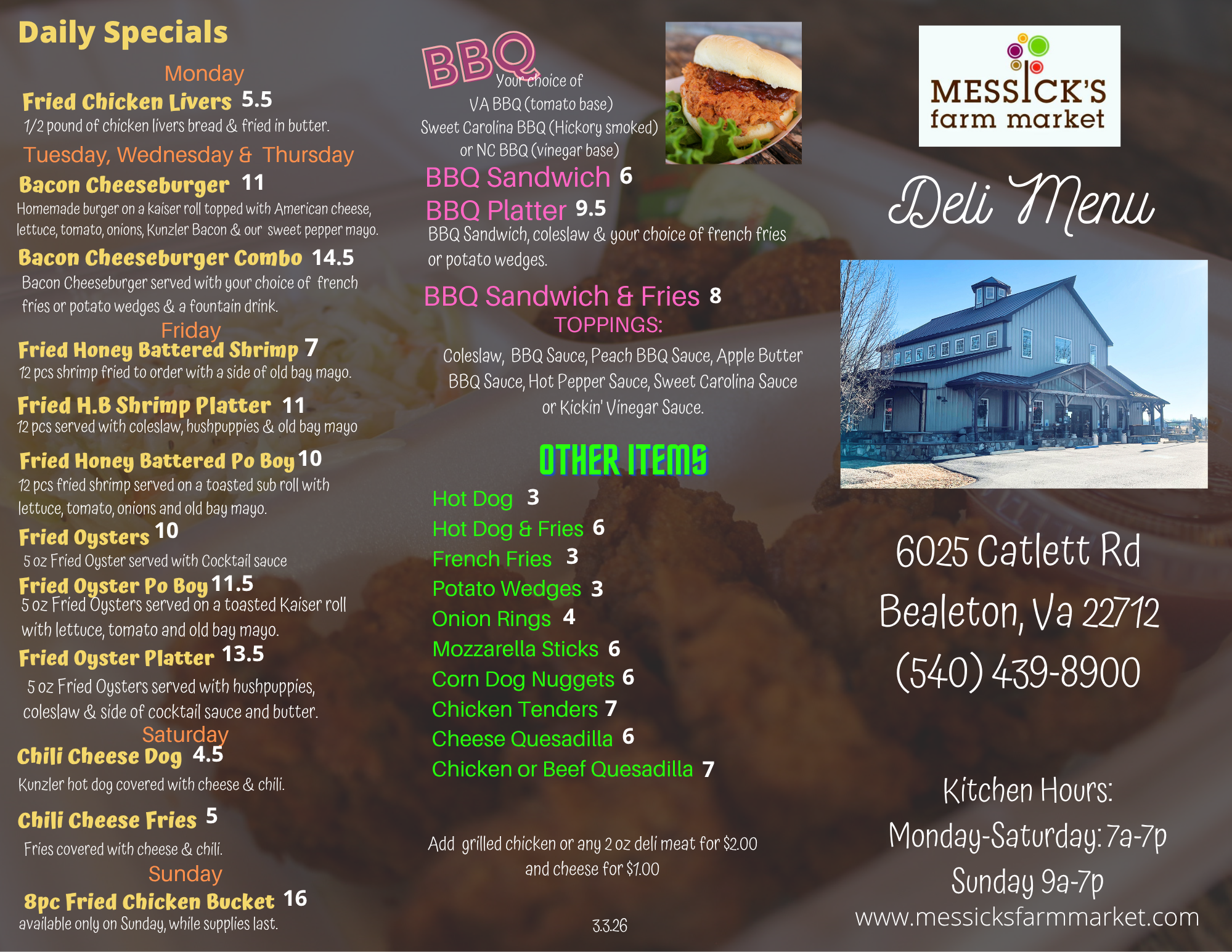 Skip the wait and call in your order at (540)-439-8900! Weāll prepare your order and have it ready for pickup at the counter.